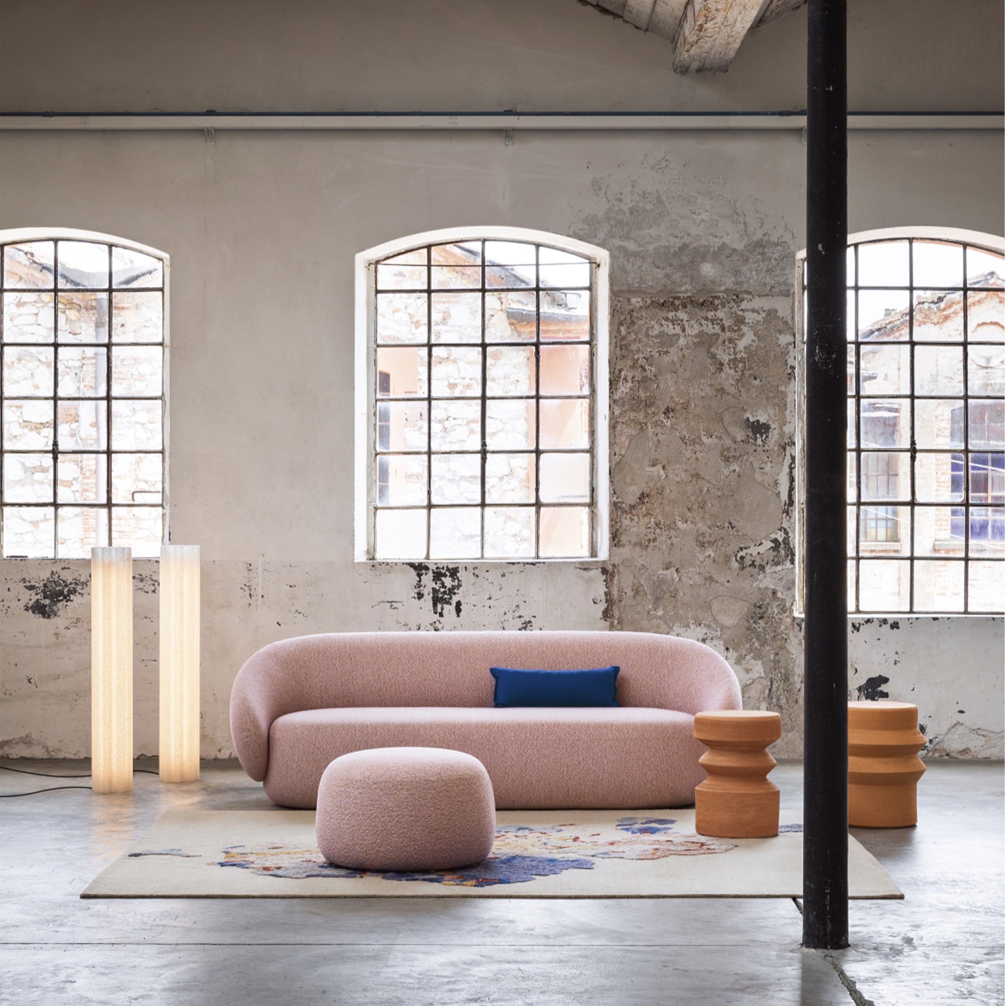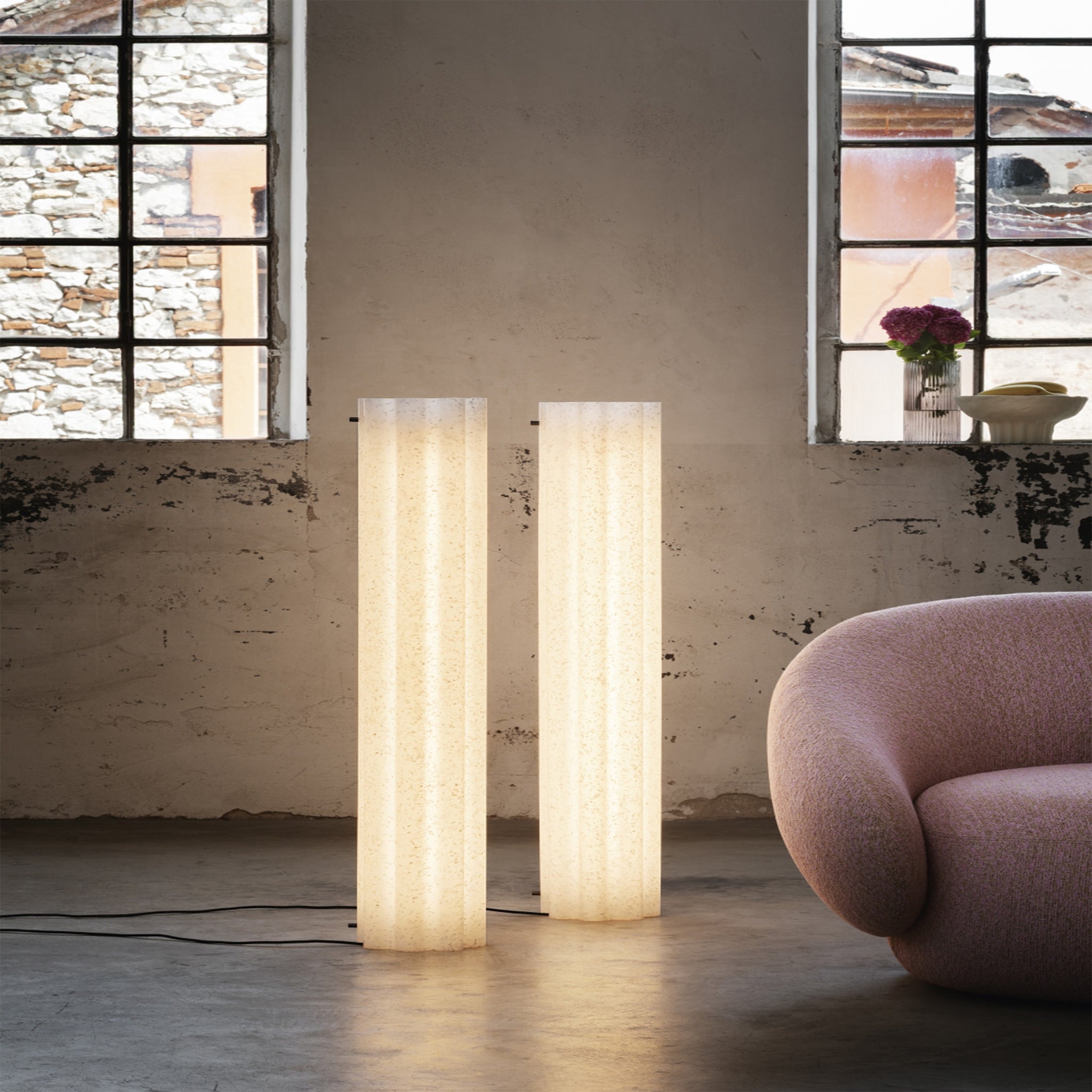 Miniforms Lucerama floor lamp reimagines the tube light with a softly undulating shade made from recycled PE. Its suspension makes it appear weightless, casting a continuous glow that brings a calm, sophisticated presence to any interior.
