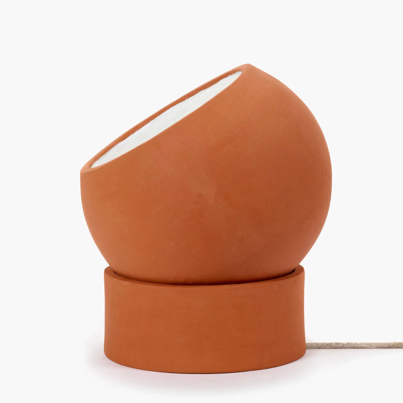 Lauren Van Driessche combined terracotta with 3D geometric shapes for this modern lamp design. The lamp’s body has a terracotta finish and a white inner surface. The design features two separate elements, allowing you to shine the lamp in the direction of your choice to create your own unique light effect. This lamp is part of the Terra Light collection.