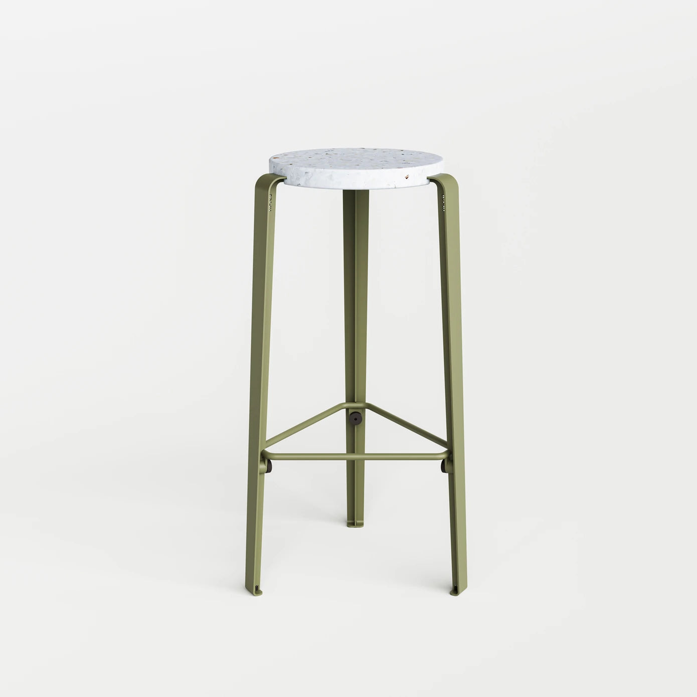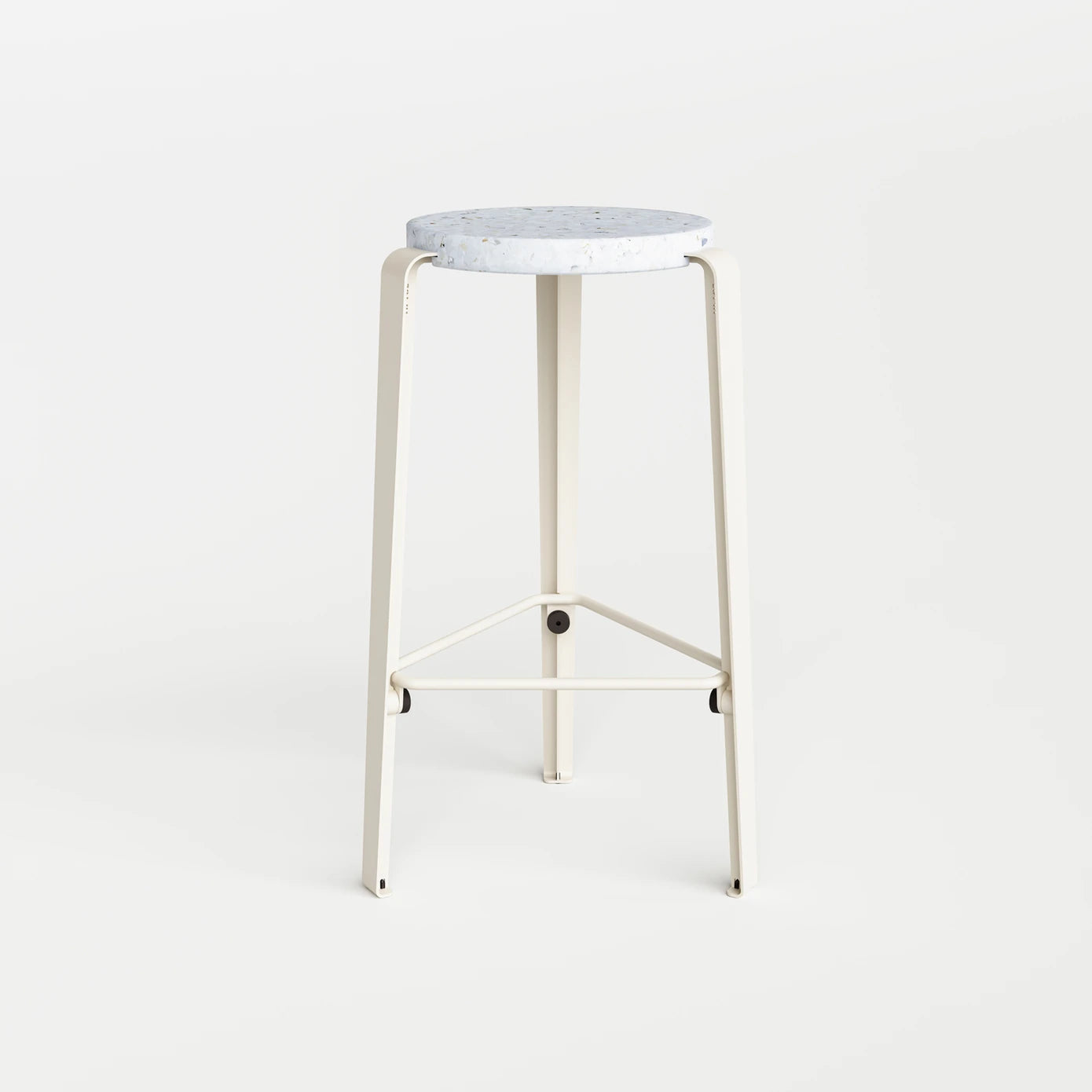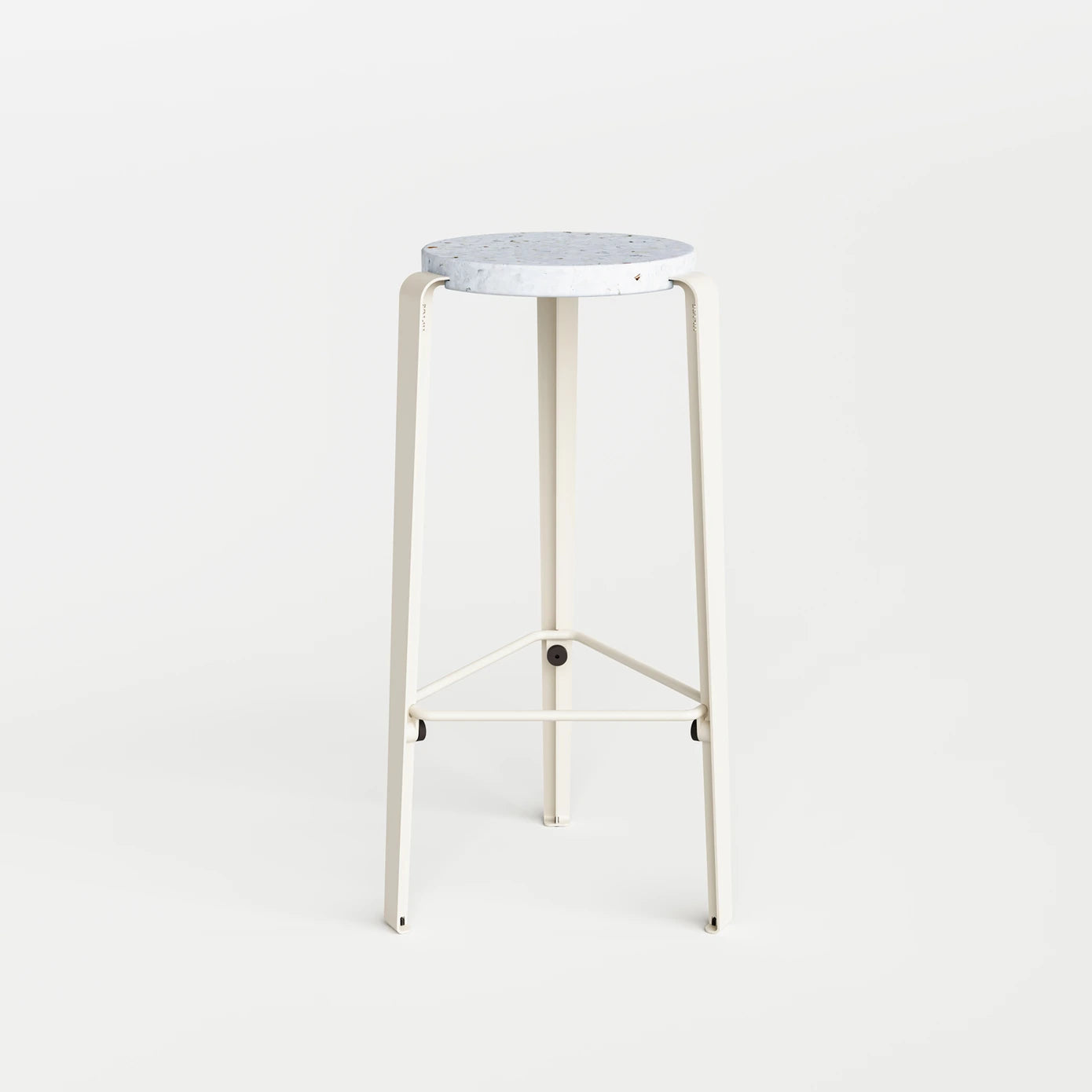 Tiptoe Lou Bar Stool Venezia is a versatile and creative piece of furniture, available in 2 sizes. Its recycled plastic seat is made from a hundred yoghurt pots.
