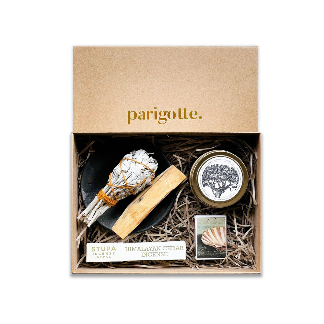 Smudging is a ceremony tied to many indigenous cultures for purifying or cleansing the soul of negative thoughts of a person or place. It involves the burning of white sage and other sacred herbs or holy woods such as palo santo.