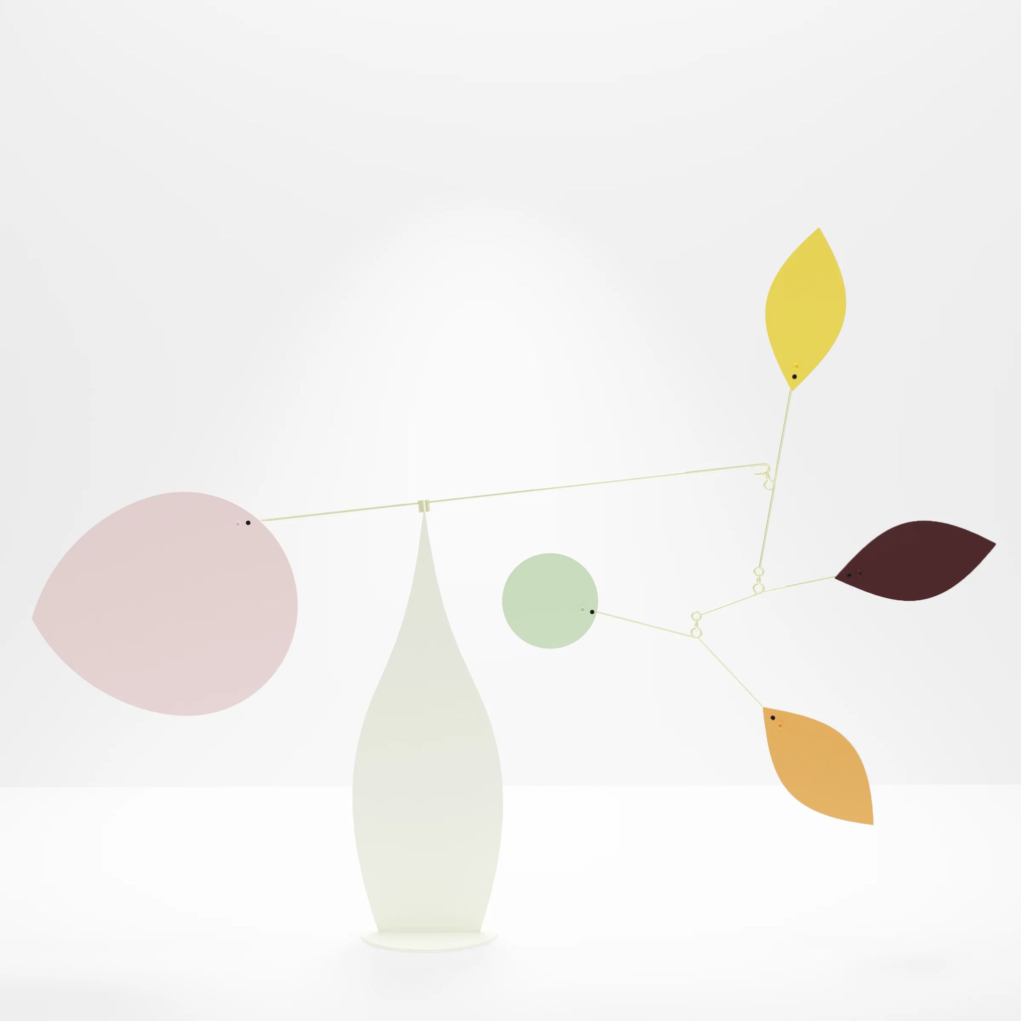 This metal sculpture, defined by its timeless and refined design, captures a subtle harmony between structure and movement. Its delicately formed blades, crafted from high-quality aluminium, appear to float like leaves caught in a gentle breeze, supported by slender, hand-shaped steel rods. Set on a solid base, it balances lightness with stability, bringing a sense of calm to any interior. Presented in an elegant blue box finished with gold-leaf detailing, it is more than a decorative object. A distinctive piece to enjoy yourself or to gift to someone special.