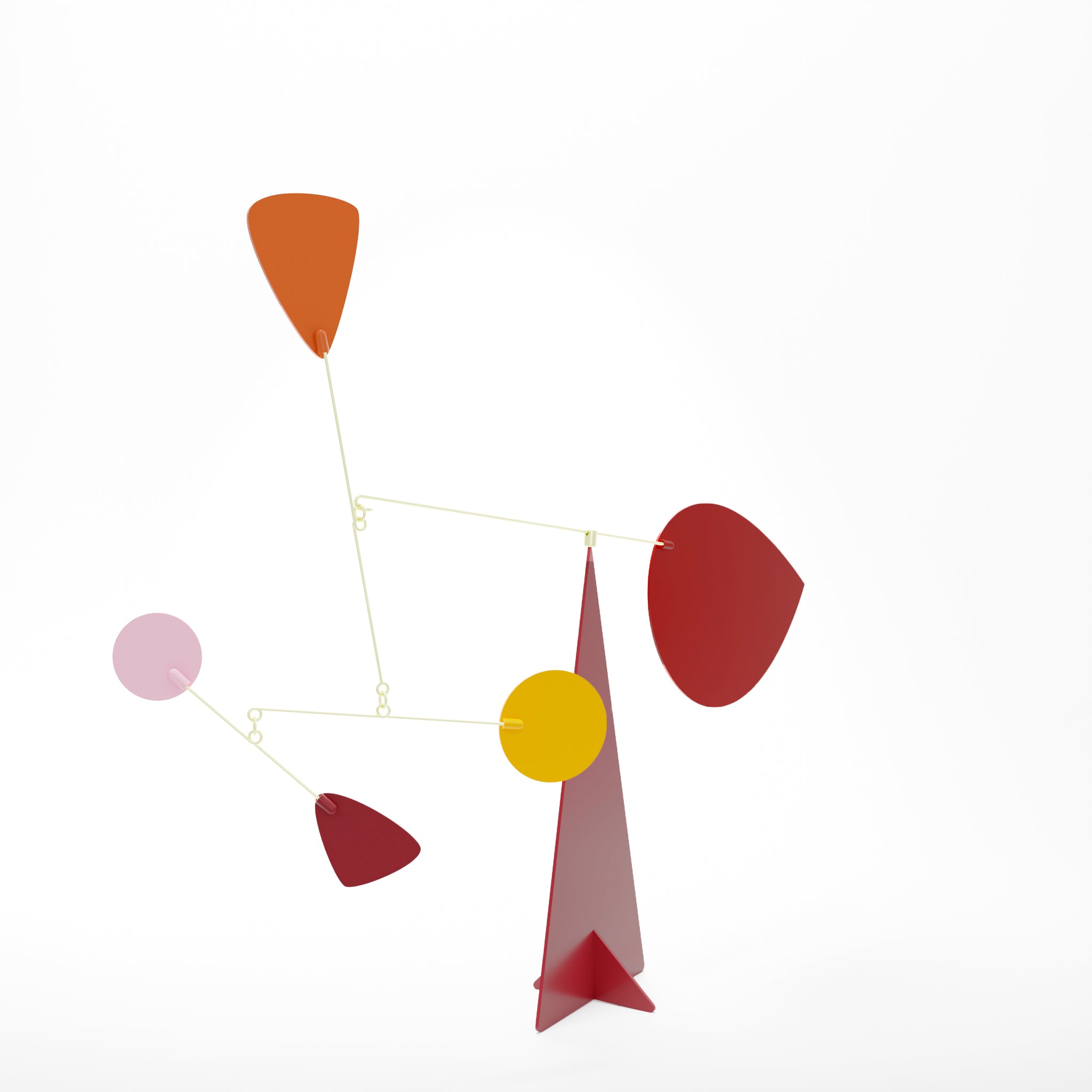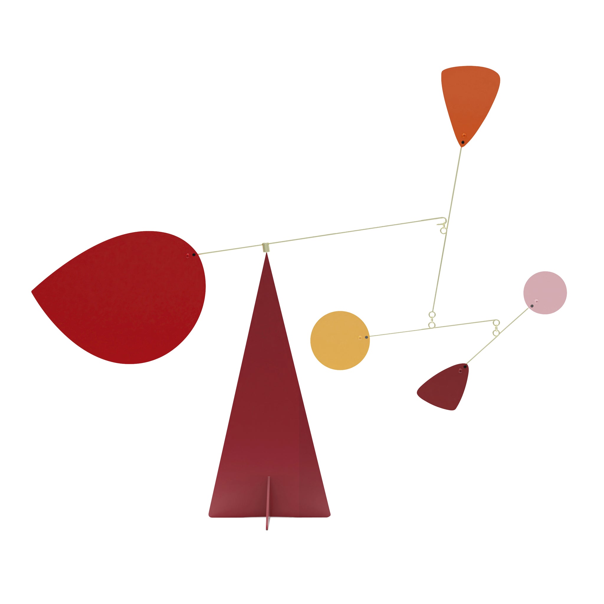The Yukatan mobile offers a set of organically shaped blades mounted on a golden structure, bringing poetry and movement to this singular creation. With finesse and delicacy, this mobile will find a place of choice in your interior. Mounted on hand bent steel rods, the blades are made from a high quality aluminum alloy. Like leaves, they twirl and float with the wind and the air circulation. The steel base gives to the mobile great stability.