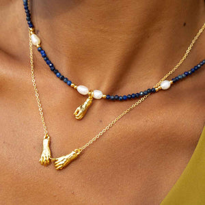 The Unita Necklace features a gold pendant of two joined hands; an age-old symbol of unity, support and solidarity. Designed to celebrate the power of sisterhood and the strength we find in one another, it’s a tribute to the women who lift us up. Layer it with your everyday stack or wear it solo as a quiet nod to the bonds that matter most.
