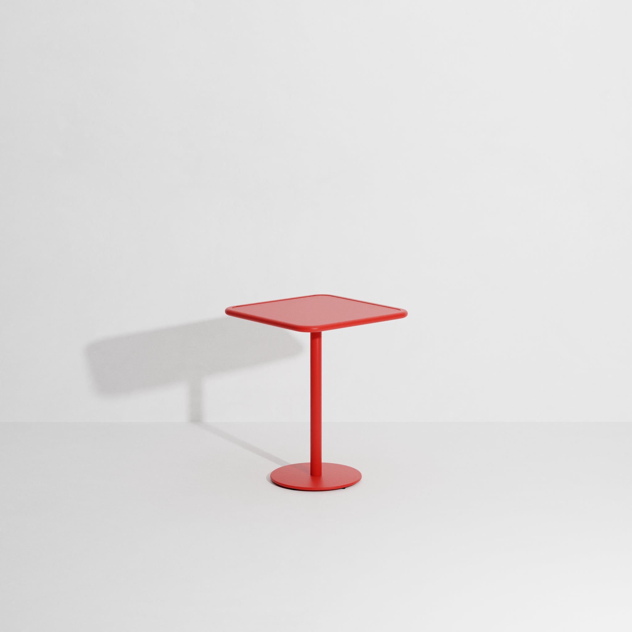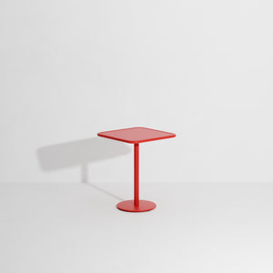 The WEEK-END collection is a full range of outdoor furniture designed by Studio Brichet-Ziegler for Petite Friture. The whole collection is made out of aluminium sheet laser-cut into the desired shape - has no screws, weld joints or rough edges. Covered with an Anti-UV powder coating for outdoor use, there is no risk for rust. When summer is over you can use it as indoor furniture. Designed with practicality in mind, this round bistro table consists of a slight rim on its top. Your glasses and plates won't getaway!
