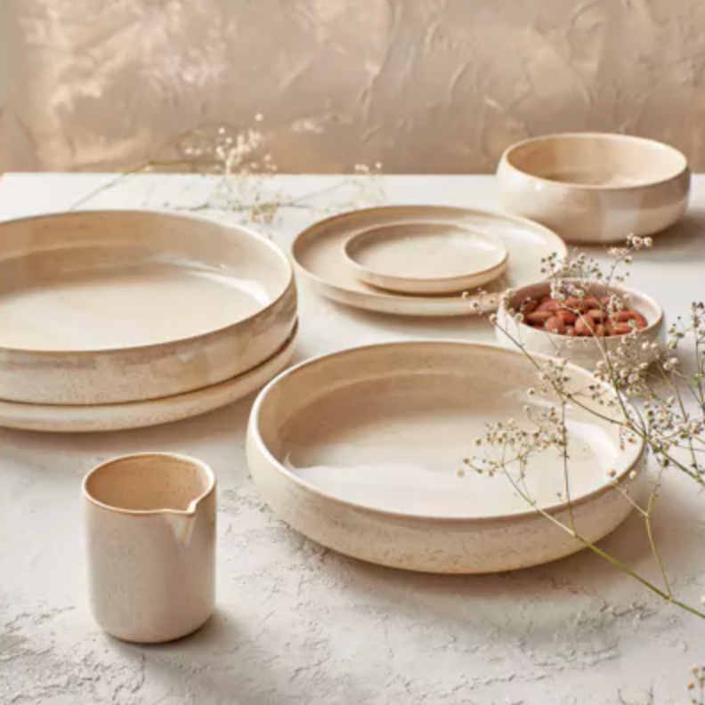 The porcelain Nougat tableware range consists of bowls and plates with a rounded, raised edge. It is made with two different reactive glazes. Because both glazes are applied manually with a brush, it seem as if you have a real work of art in your hands, of which every piece is unique.