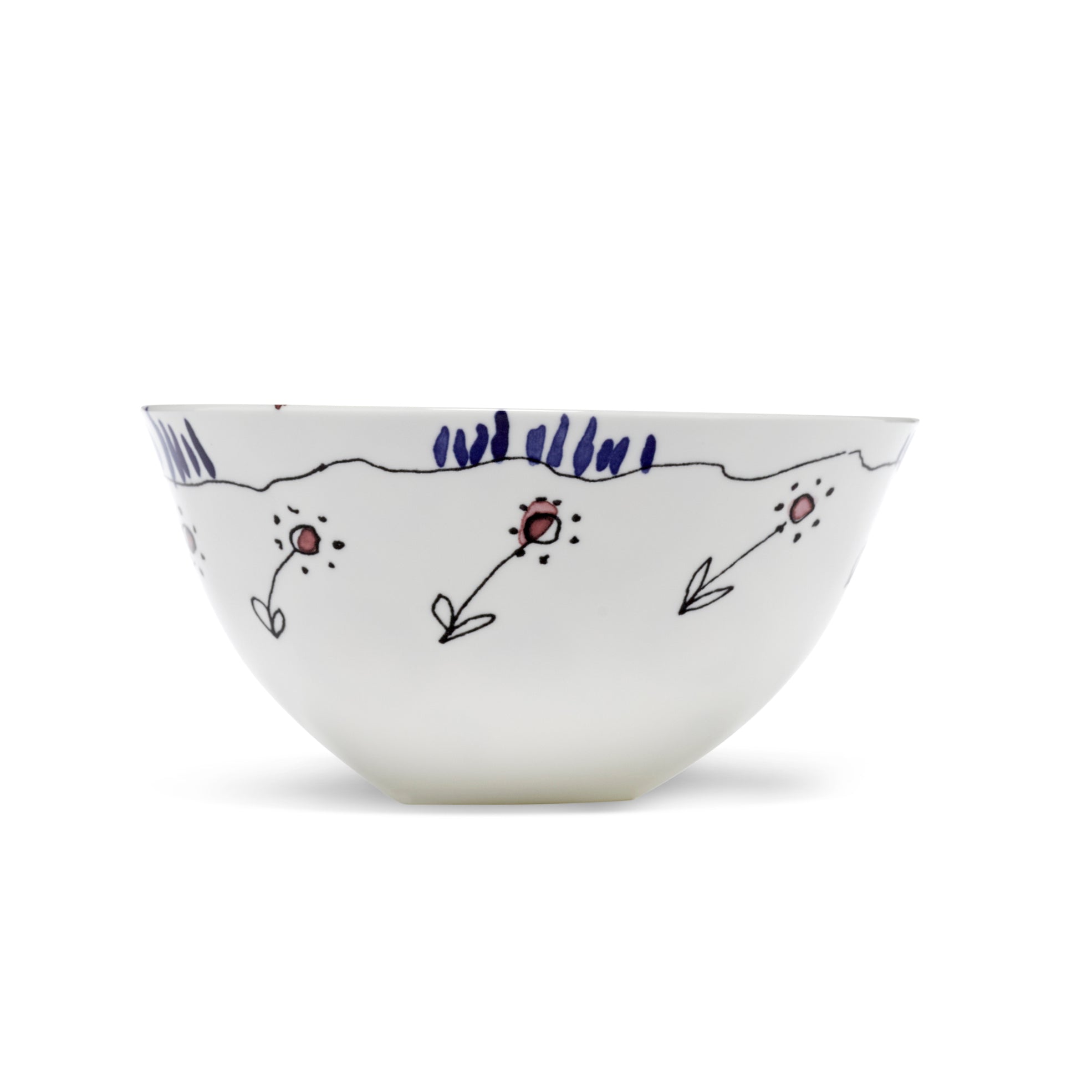 Midnight Flowers is a botanical-inspired range of hand-illustrated porcelain tableware, interpreting the Marni brand values through a new medium, highlighting an avant-garde approach that holds a constant dialogue with the world of art, with Serax as proud partners.