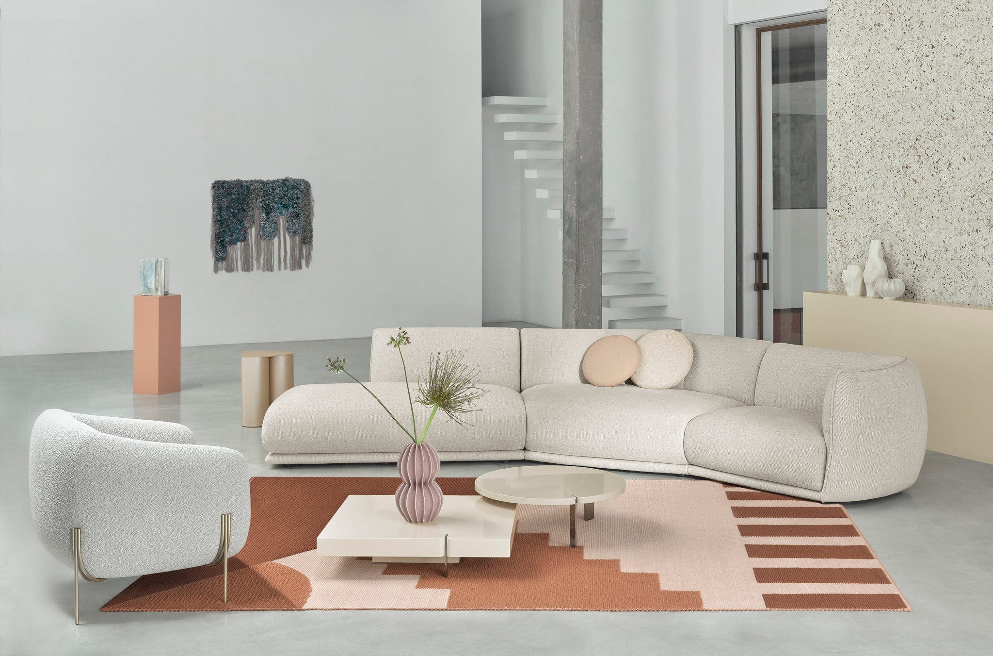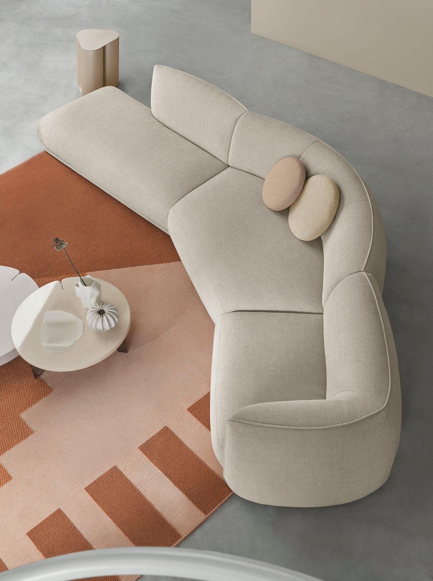 This concept is translated into Vela, Italian for “sail”, a sofa whose silhouette and precious details recall the elegance of this object. The fabric upholstery subtly alludes to the mainsail and the jib, tracing stylistically defined imaginary trajectories.