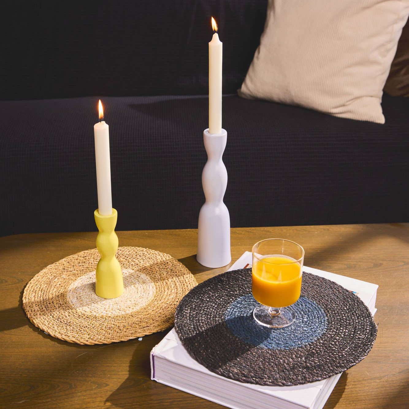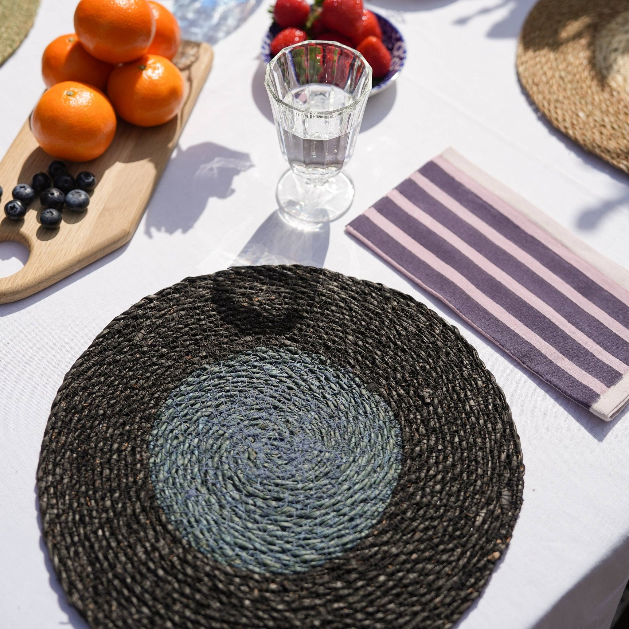 This decorative two-piece set is handcrafted from twisted and dyed seagrass, creating a unique work of art. Available in a variety of colourways, the two-tone combination of each set elevates this classic woven design, pairing stylish colours with organic craftmanship. Each placement brings a touch of contemporary and rustic charm to your table. These placemats are not only a great way to protect dining surfaces but may also be used as a decorative item throughout your home. This is a handmade product therefore each item is unique in nature. Slight variations may occur.