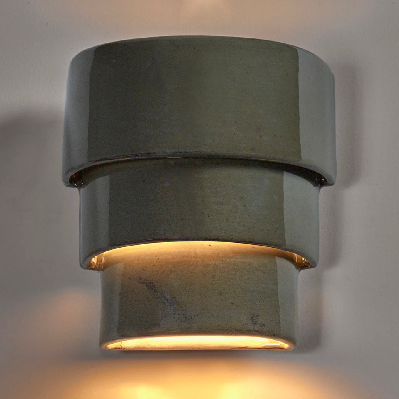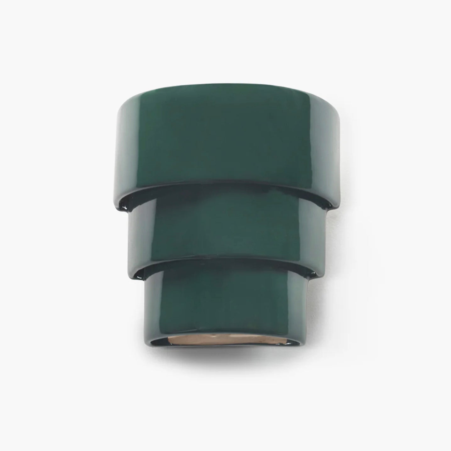 This ceramic wall lamp from the Terres de Rêves collection by Anita Le Grelle has wide, rounded layers that reflect the light softly across the wall. James is available in ocher and rust and adds colour and volume to the room in a subtle way.