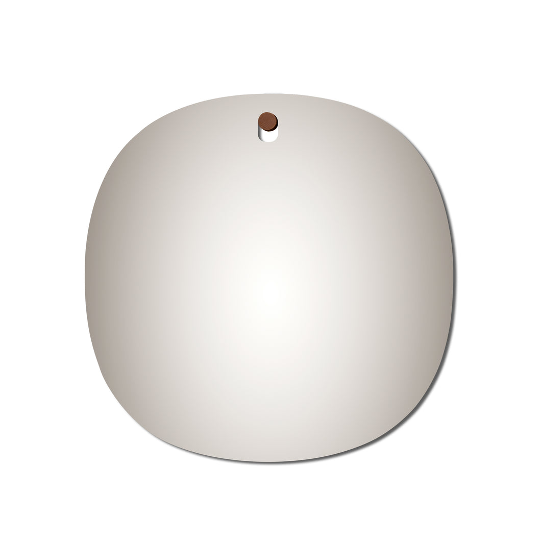 Bigger Brother Mirror is a large mirror by Miniforms. Unique in its upper detail in beech wood, that acts as a visible wall mount. Its shape is not a complete circle, but an almost rounded square that adds softness to any room.