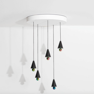 The Cherry suspension lamps refer to our childhood souls: the rubbers we would collect and, more obviously, the ice cream cone with the cherry on top that we loved so much.