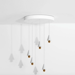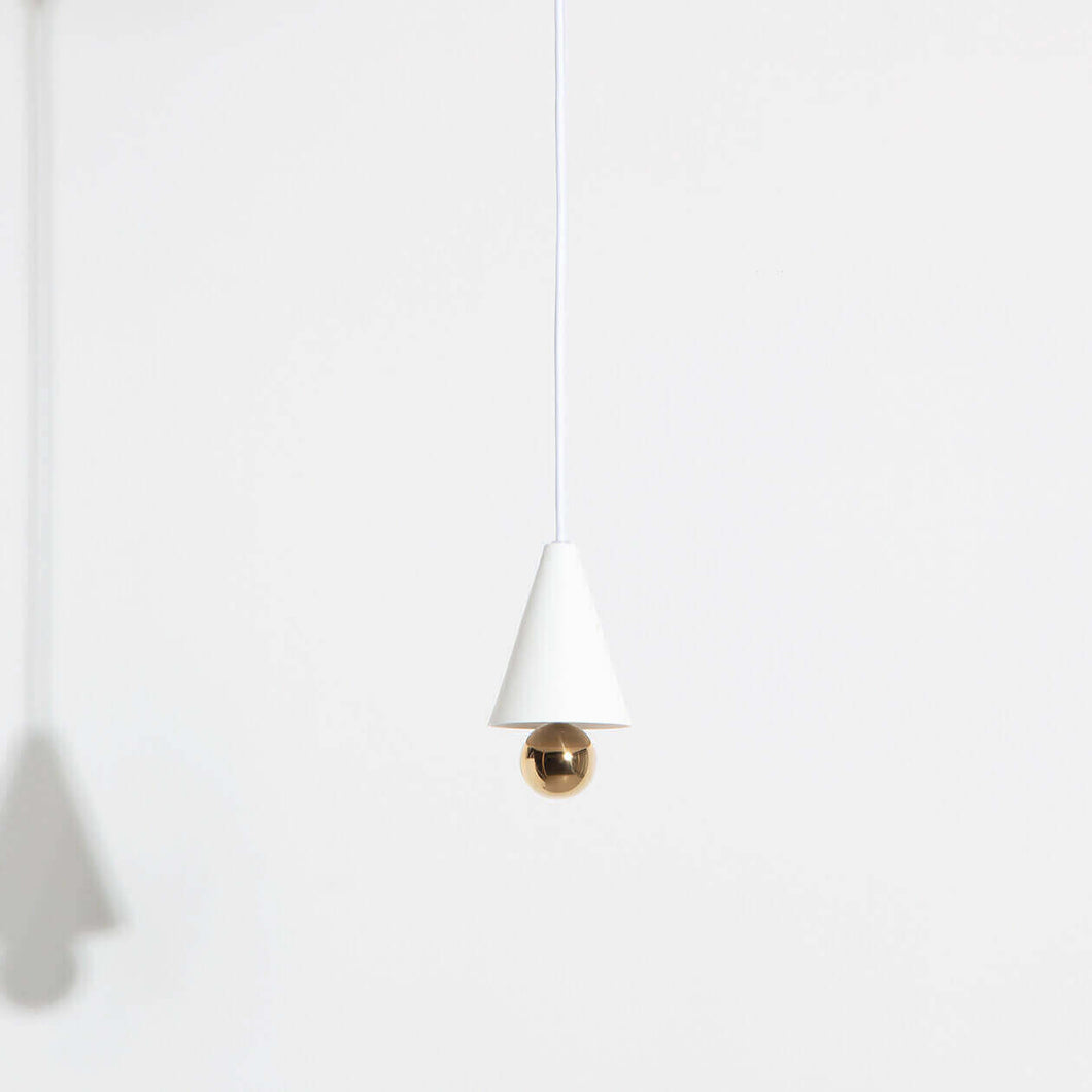 The Australian duo Daniel and Emma designed Cherry a simple and minimalist pendant lamp comprised of an aluminum cone mounted on a sphere. The soft light produced by the diffuser reflects off the mirror-finish steel.