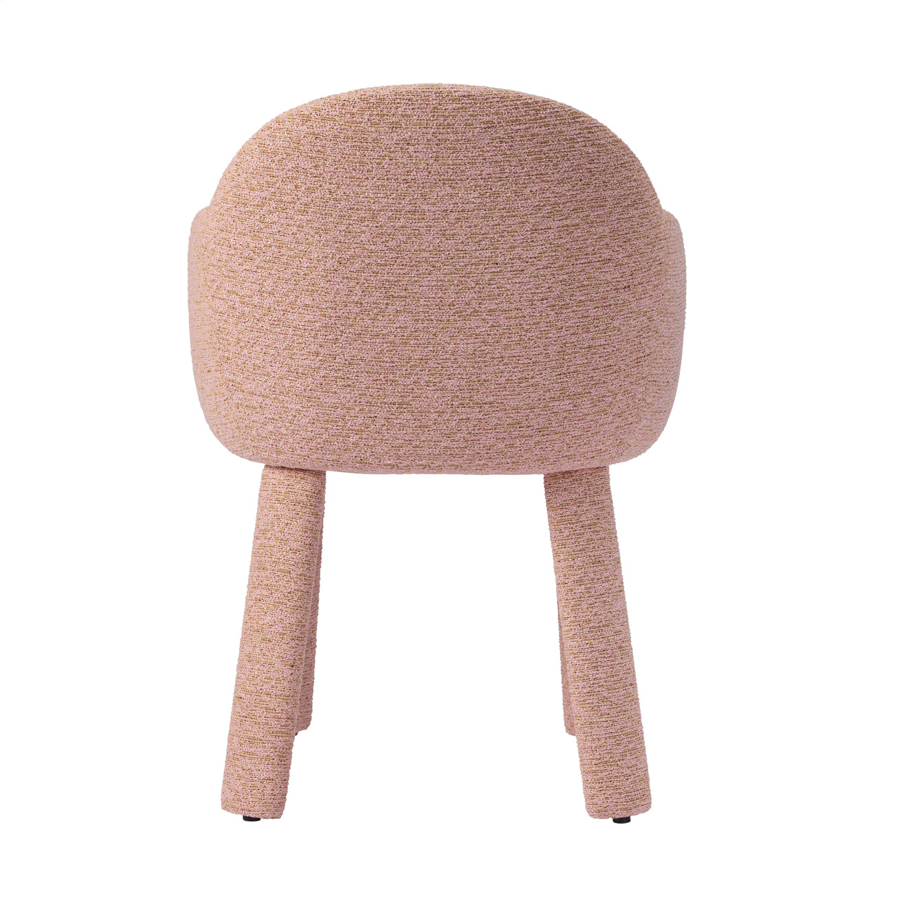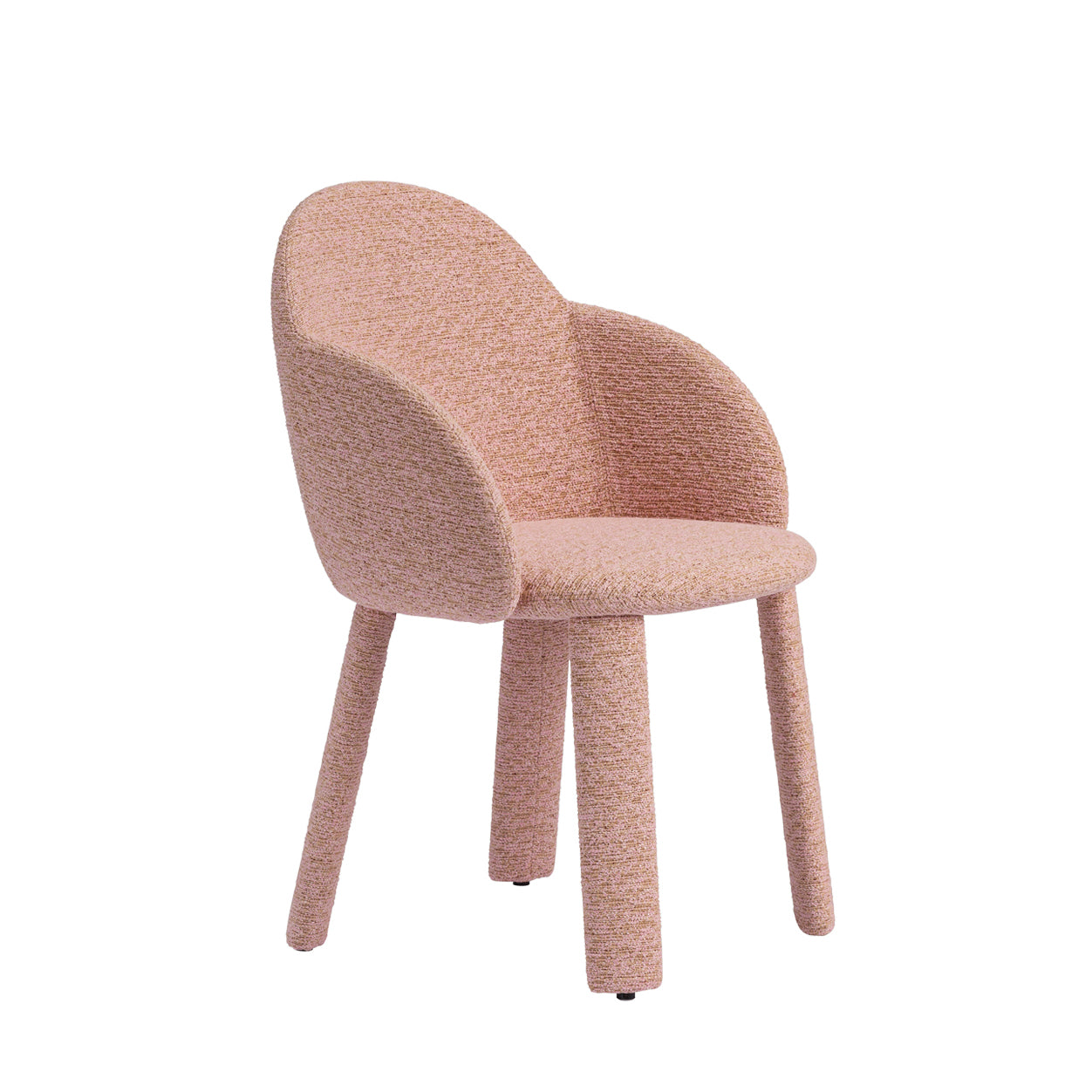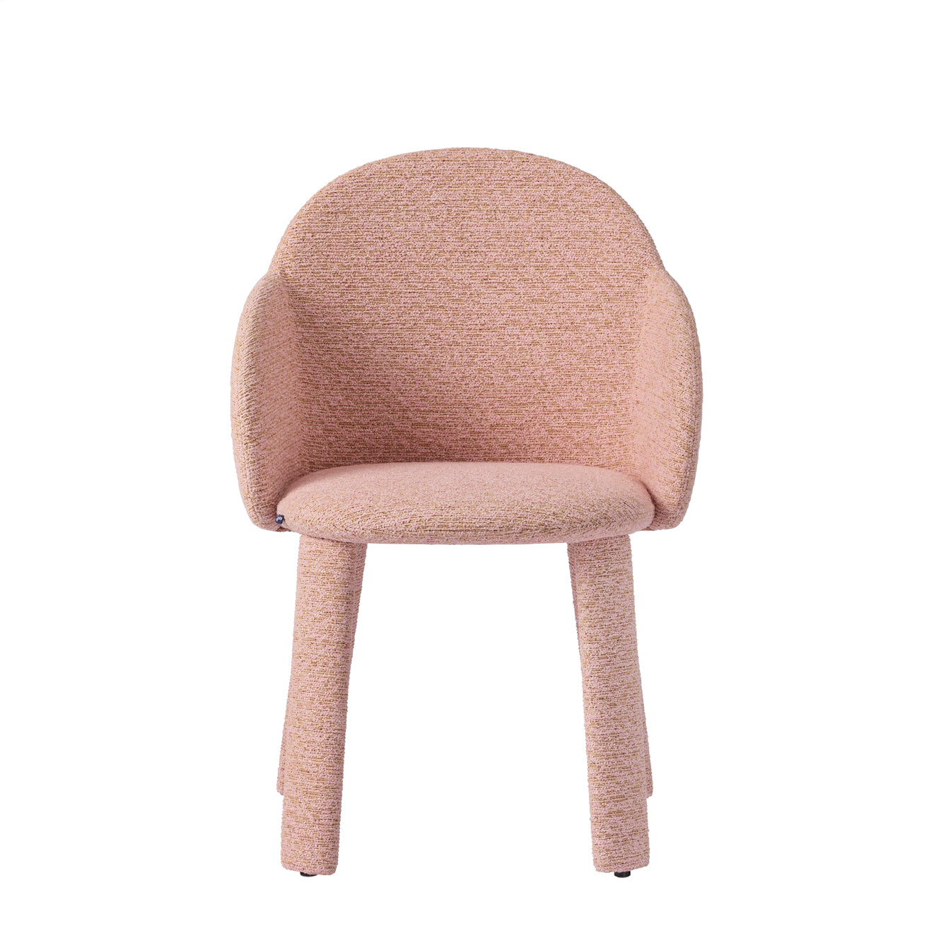 A cozy design with bold character; the Iola Socks chair features a shell-shaped backrest and gently curved arms, creating a soft, sculptural silhouette. Fully upholstered, including its legs (hence the name "Socks"), this chair blends elegance with playfulness. Available in a wide range of fabrics and colours to suit any space. Please specify upon your order.