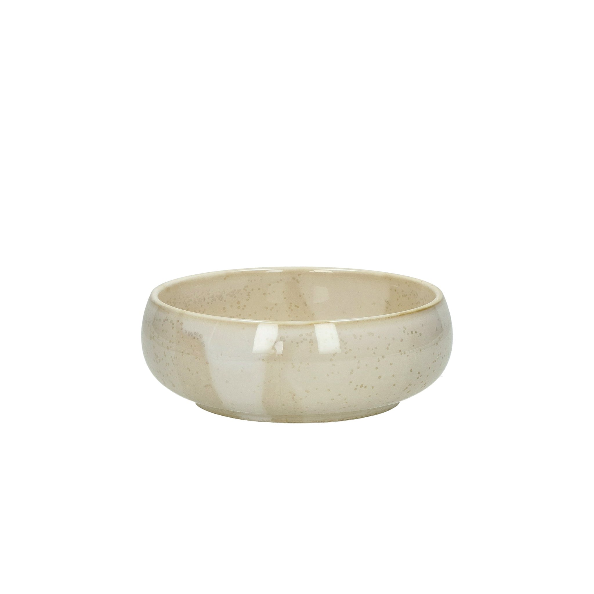 The porcelain Nougat tableware range consists of bowls and plates with a rounded, raised edge. It is made with two different reactive glazes. Because both glazes are applied manually with a brush, it seem as if you have a real work of art in your hands, of which every piece is unique.