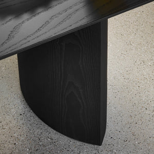 The Plauto dining table is available in 3 different sizes. The leaf-cut legs can be made in flamed oak, Canaletto walnut or black ash. The top is available in the same wood finishes, in ceramic or in marble. For detailed finishes please download the technical sheet here.