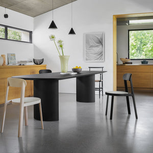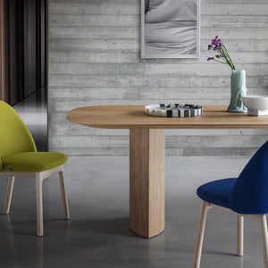 The Plauto dining table designed by Paolo Capello and Simone Sabatti for Miniforms, scans the past seeking ideas for the future. Its characteristic leaf-shaped legs have merged into one, making the monolithic inspiration behind its design even more evident.