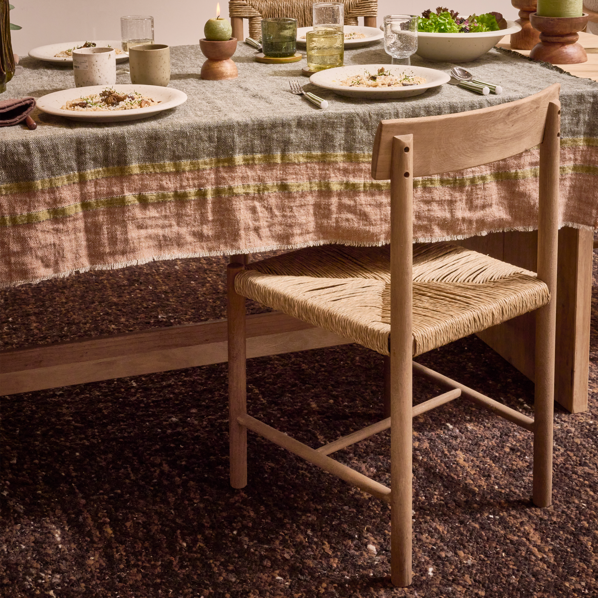 The Mesimeri chairs bring a boho-chic charm to any space with their natural oak frame and rustic rattan details. Choose between a flexible rattan backrest for airy comfort or a solid wooden backrest for added support. These chairs add a relaxed, handcrafted feel to your interior. Made from fast-growing, renewable rattan and durable oak, they’re as stylish as they are sustainable.