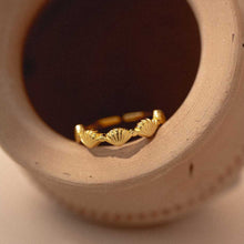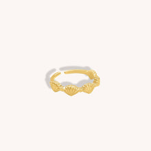 Embrace the beachside vibes with the biggest trend of the summer. A delicate row of hand carved scallop shells sit along an adjustable thin band, perfect to wear alone or layer up with your fave rings