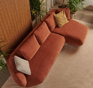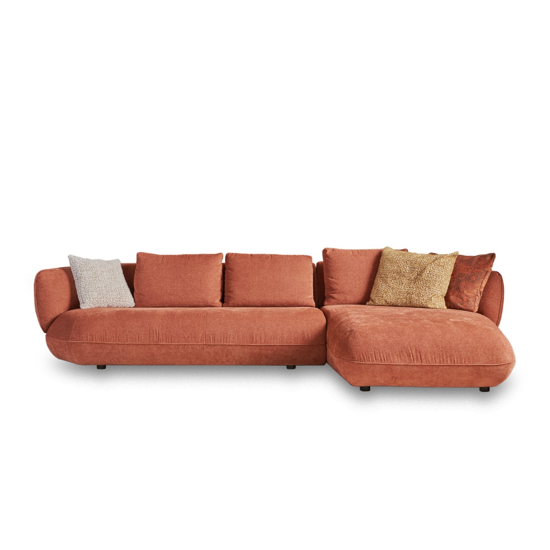 The Serifos Sofa embodies organic softness and an enveloping feel. It is available in the fabric of your choice, here shown as a 2-seater sofa with either a right or left chaise longue. Also available in a 2 seat sofa, or 3 seat sofa.