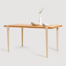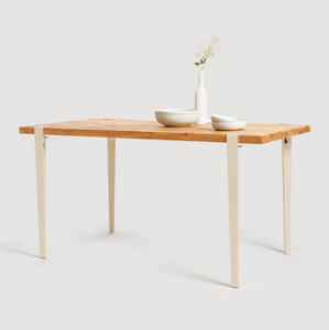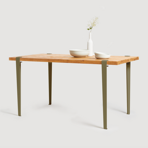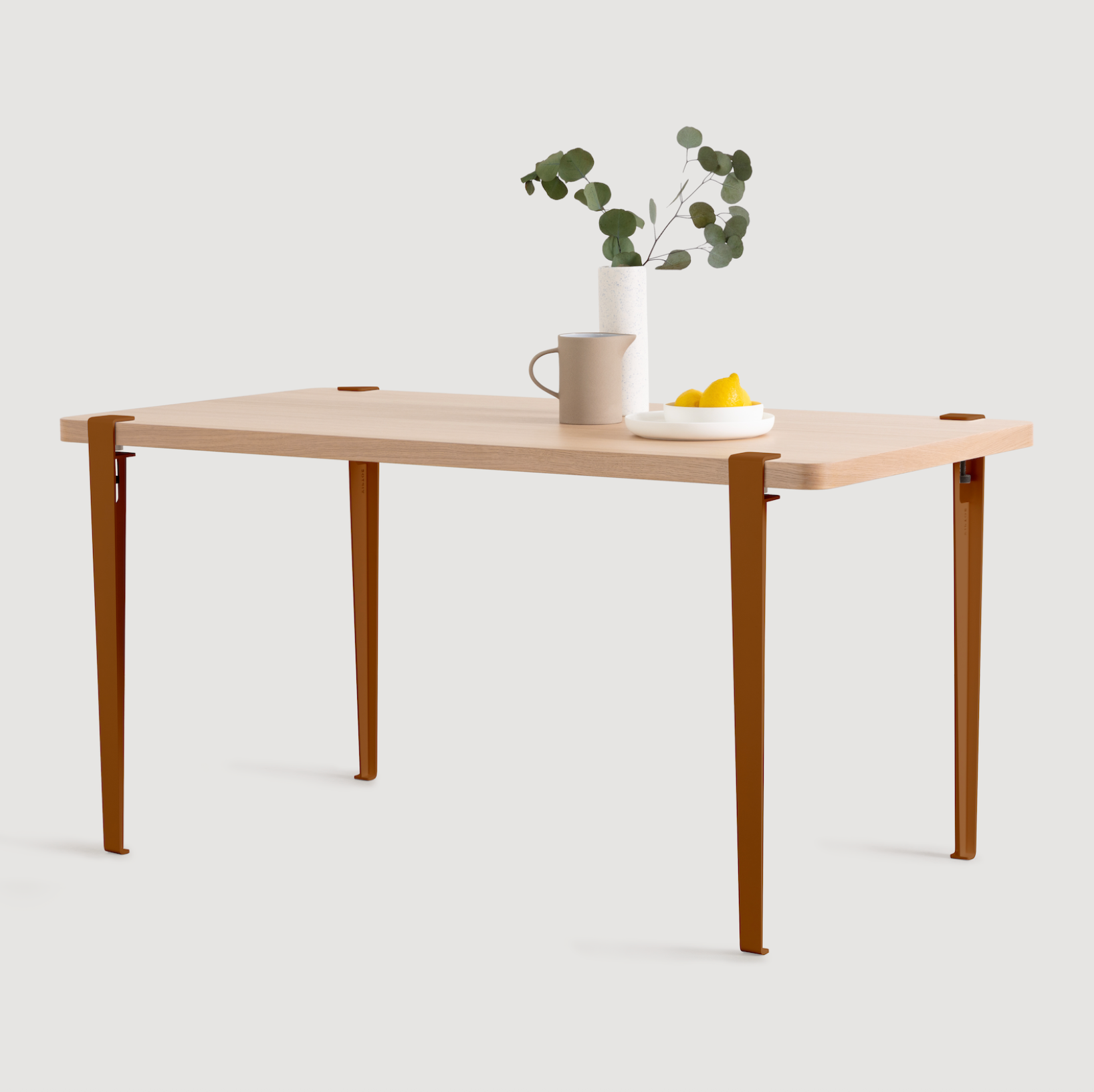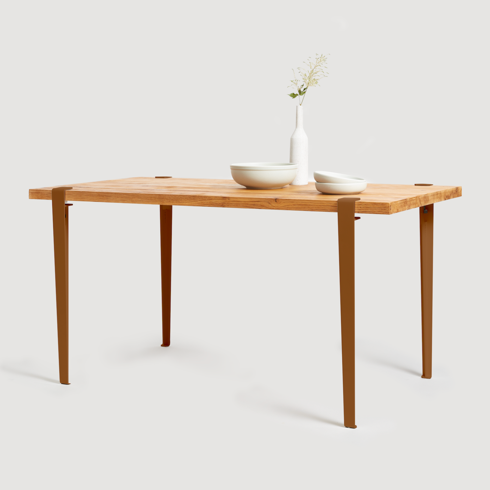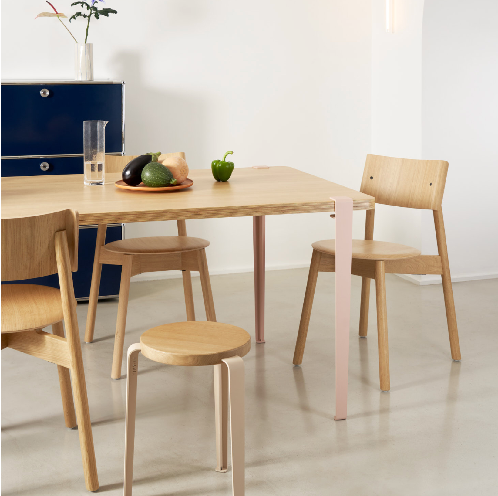 Designed in collaboration with HEJU studio, the HEJU dining table blends minimalist form with Nordic-inspired colour and texture. Available in two sizes (120×60 cm or 150×75 cm), it comfortably seats up to 6 people and features an oak veneer or reclaimed oak top with 75 cm powder-coated steel legs. This limited, stamped edition showcases exclusive, natural tones; an elegant fusion of Japanese and Scandinavian influence, 100% made in Europe.
