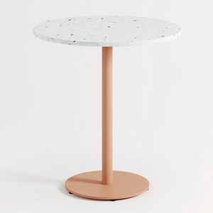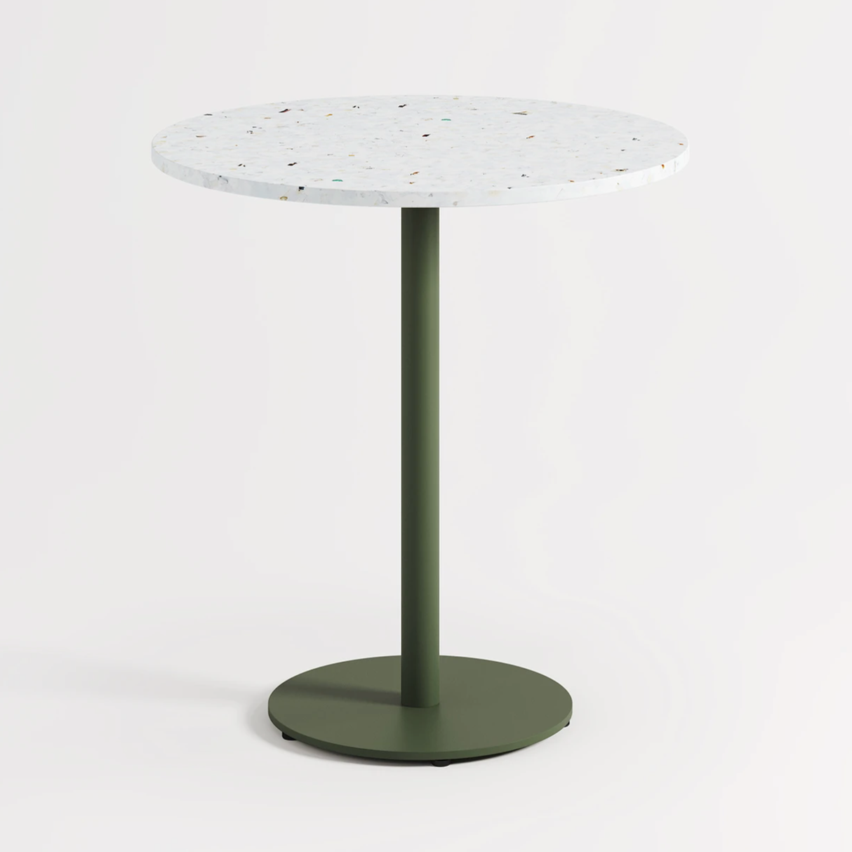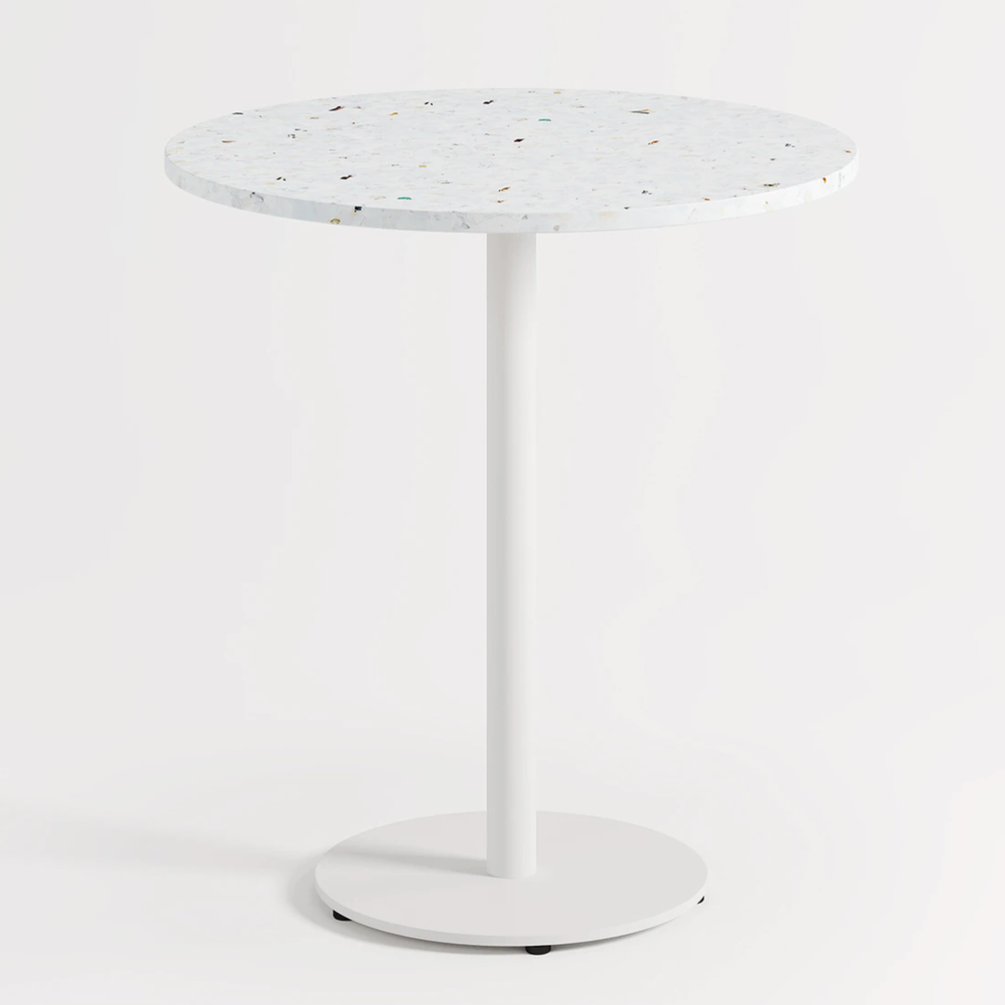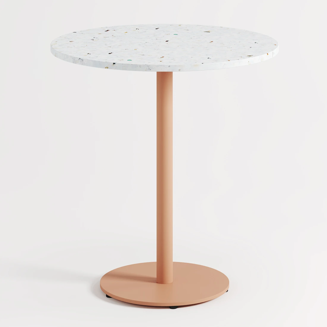 The Moka bistro table brings minimalist charm and sustainability into any space. Featuring a round or square tabletop made from recycled plastic and a sleek, powder-coated steel leg, it’s perfect for two people—whether in a cozy kitchen corner or a stylish café. Functional, elegant, and 100% made in Europe, Moka is available in multiple heights to suit dining, lounging, or standing needs.