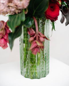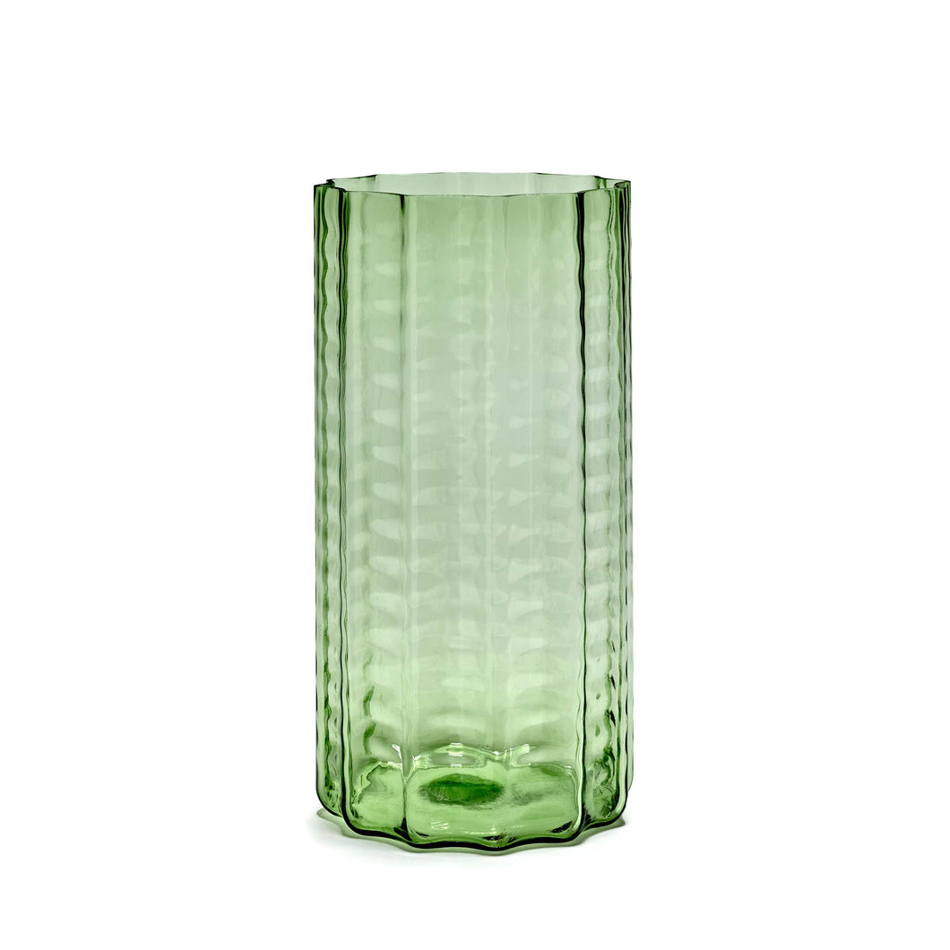 Inspired by the striking windows of Antwerp’s MAS Museum, this mouthblown vase by Ruben Deriemaker is a sculptural piece in its own right. Its subtle colour and unique form make it the perfect vessel for a small bunch of flowers—or a beautiful object on its own.