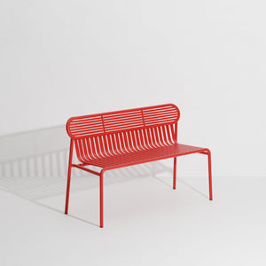 The WEEK-END collection is a full range of outdoor furniture designed by Studio Brichet-Ziegler for Petite Friture. The whole collection is made out of aluminium sheet laser-cut into the desired shape - has no screws, weld joints or rough edges. Covered with an Anti-UV powder coating for outdoor use, there is no risk for rust.  When summer is over you can use it as indoor furniture. Designed with practicality in mind, all of the seats, including the garden benches, are stackable. The oval and circular shape drawn by the backrests makes them a graphic statement. The impact of the horizontal and vertical slats, so similar to stripes, highlights the full and empty spaces, asserting the identity of the collection.